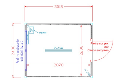1 porte et une grande fenêtre DV avec volets roulants