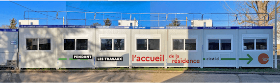 Pour l’accueil de la résidence étudiante du Crous Lorraine, ALLOMAT a installé cet ensemble de DOMINO avec garde corps de toiture pendant la durée des travaux. 14 modules DOMINO ainsi que 2 sanitaires ont ainsi été installés en seulement 2 jours pour assurer au personnel et aux étudiants un accueil dans les meilleures conditions. ALLOMAT, le service proche de vous.